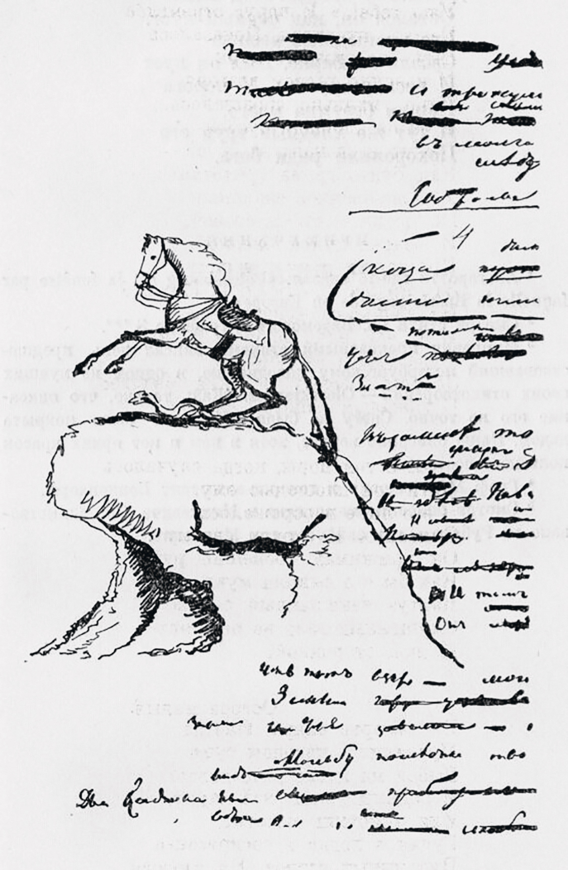 В черновиках поэмы содержатся внятные свидетельства сближения природной стихии со стихией бунта. Тот эпизод, когда наводнение, залив Сенатскую площадь, у её края загнало Евгения на мраморного льва, сопровождался следующий характеристикой бедствия: