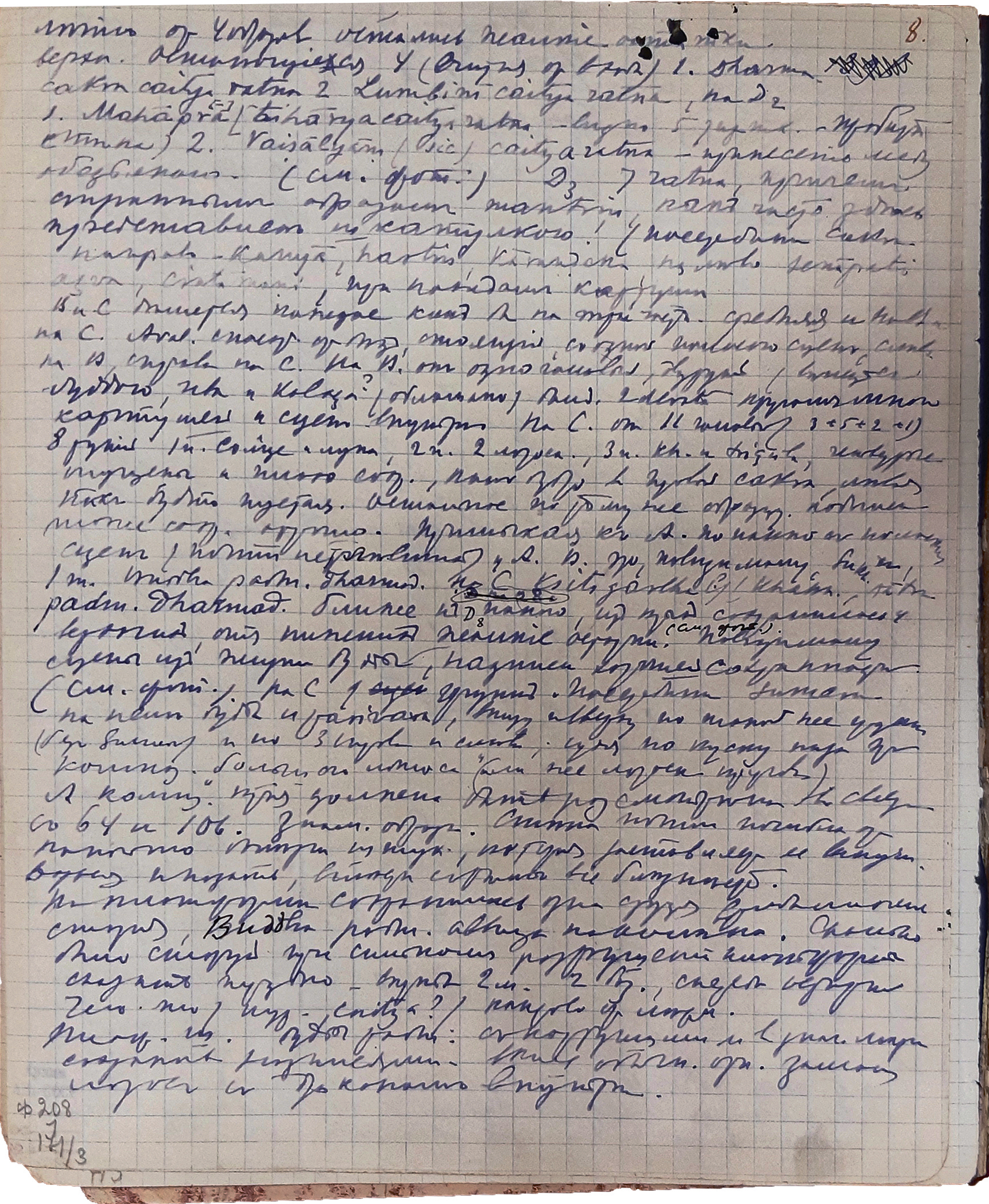 Равным образом без какой-либо последовательности вместо рукописных вариантов buddha/bodhisattva (чаще всего в сокращениях) в машинописи появляется кириллическая передача, и наоборот. Это свидетельствует о том, что машинопись готовилась под диктовку, без уточнения формата рукописи.