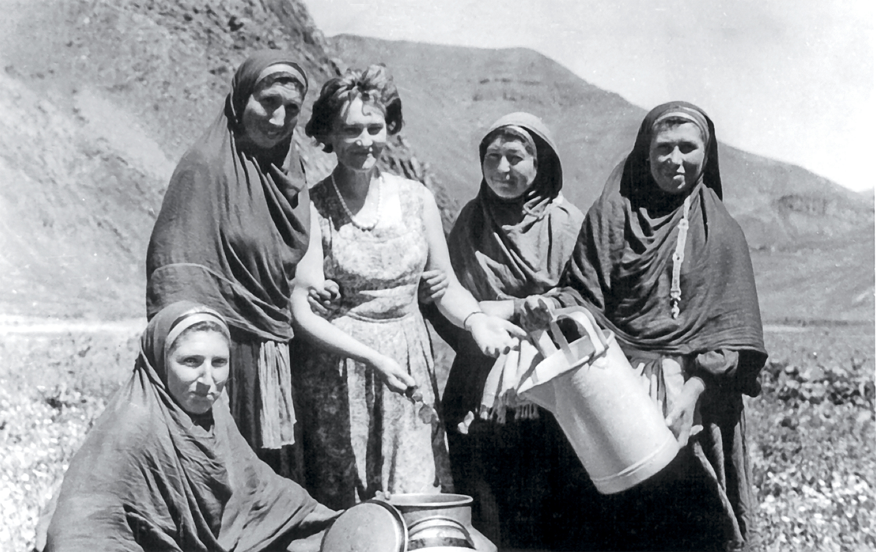 6. Fig. 5. G.A. Sergeeva among female milkmaids from the town of Archi, Charodinsky district, Dagestan. 1963.