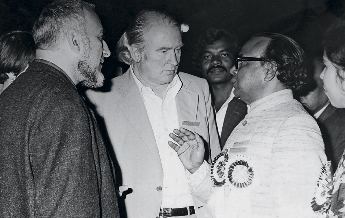 15. Fig. 15. S.A. Arutyunov and Yu.V. Bromley talk with the President of the 10th Congress of ICAES, Prof. L.P. Vidyardhi, in Delhi, India. 1978.