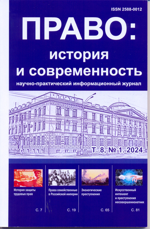 The paper presents an overview and features of criminal acts against family rights provided for in the Criminal Code of the Russian Empire of 1903. A classification of these acts is proposed. The conceptual differences between Western European and Russian approaches to the definition of torts in the field of family relations in the 18th and 19th centuries are noted. The conclusion is made about a significant narrowing of the range of criminal acts defined in the Criminal Code of 1903, compared with the Code on Punishments of Criminal and Correctional in the wording that was in force at the time of the adoption of the Criminal Code of 1903. The immediate causes of this narrowing are shown and systematized. The general object of criminal encroachment in the view of the developers of the Criminal Code of 1903 and the generic object in cases of encroachments on family rights are disclosed. The conclusion is substantiated that in the considered encroachments, religious and moral principles in some cases acted as an additional object of protection in the Criminal Code of 1903 and in many cases they were such an object in the previous Code. In addition, it is indicated that the differences in the responsibility of Orthodox and non-Orthodox have been erased in this Criminal Code and the differences in the responsibility of Christians and persons of other faith have been smoothed out.