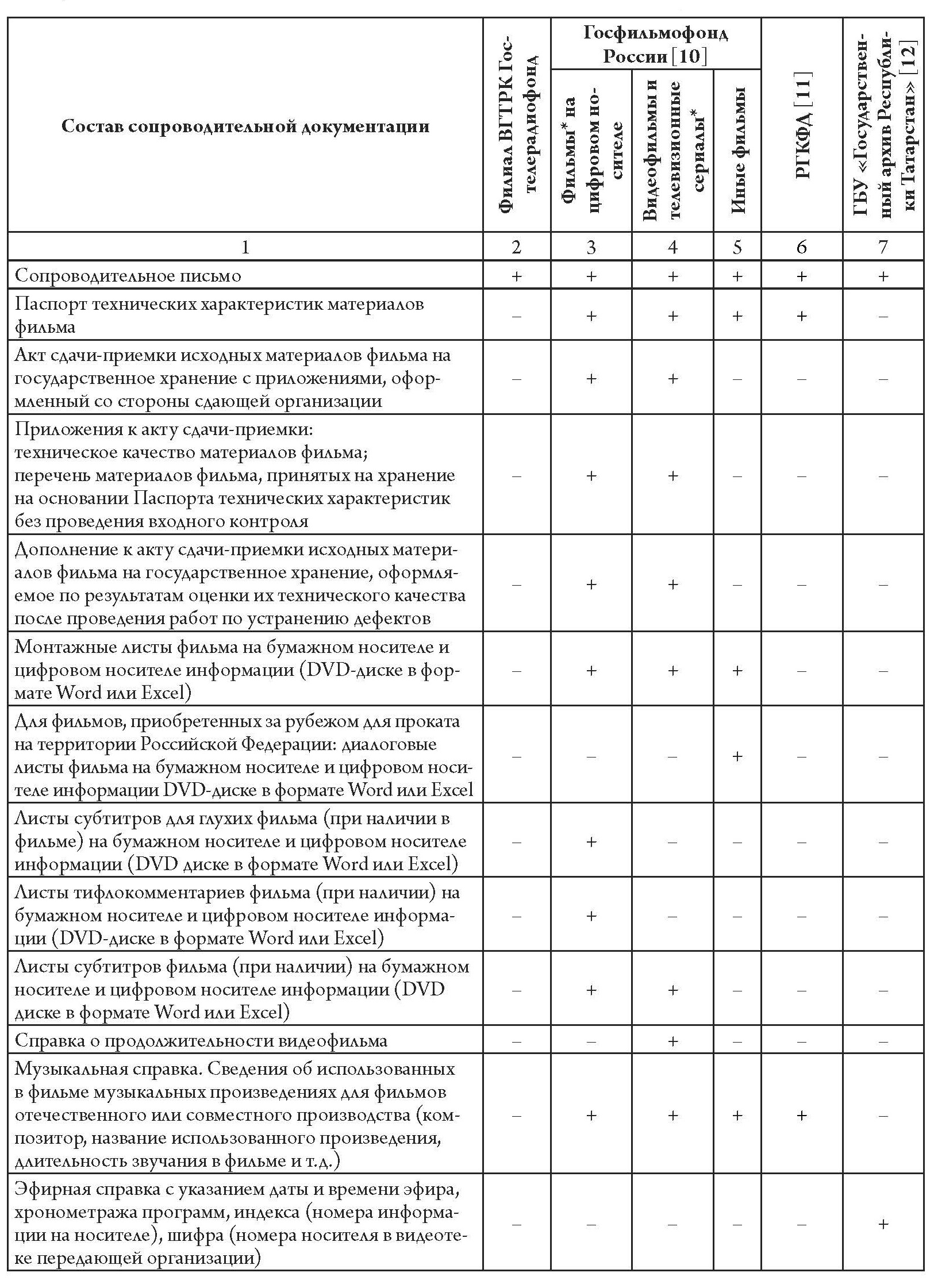 Аналогичным образом из таблицы 2 видно, что состав сопроводительных документов, необходимых для передачи обязательного экземпляра фонопродукции в Гостелерадиофонд, значительно меньше, чем состав сопроводительных документов, необходимых для передачи обязательного экземпляра фонопродукции, например, в Государственное бюджетное учреждение Республики Татарстан «Государственный архив Республики Татарстан» (далее – ГБУ «Государственный архив Республики Татарстан»).