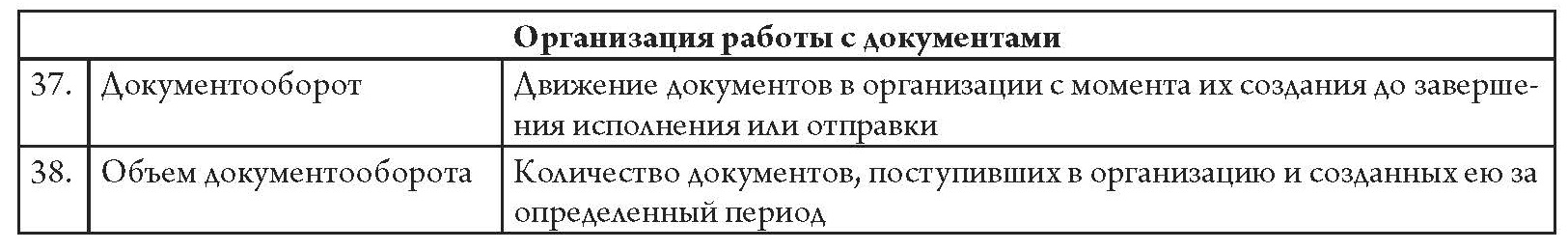Понятие «документооборот» закрепляется в государственном стандарте и становится единым, кроме того, в отдельный термин выделяется «объем документооборота» (табл. 1).