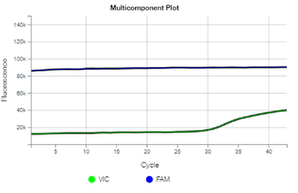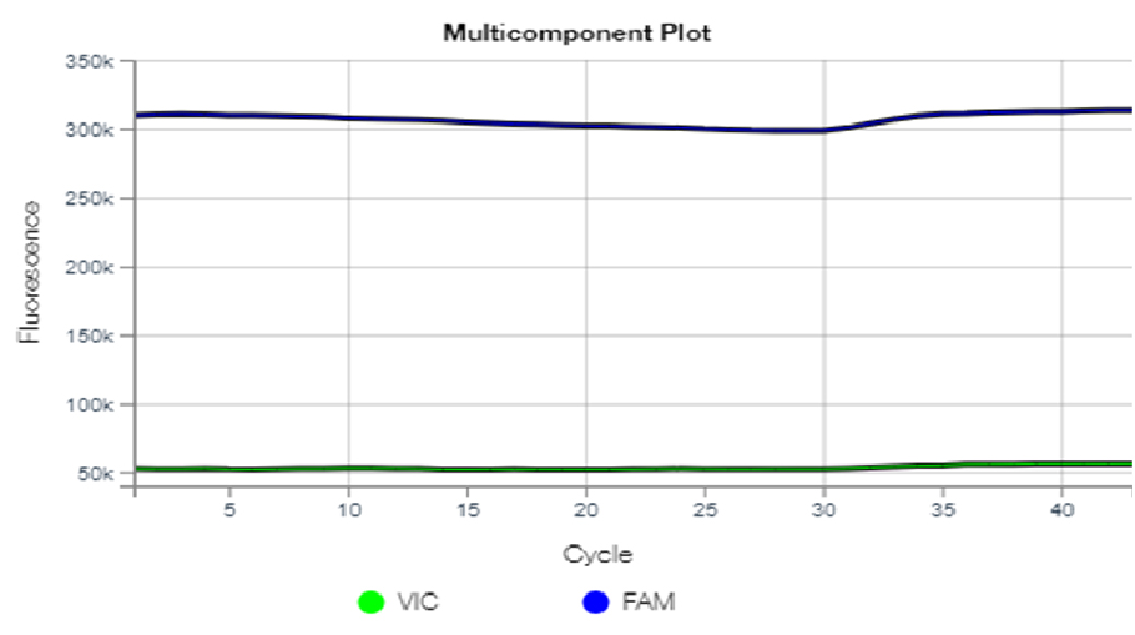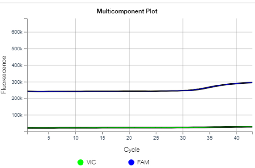 Figure 7. Fluorescence curves identifying homozygous (wild) genotype FMO3 (RR) gene