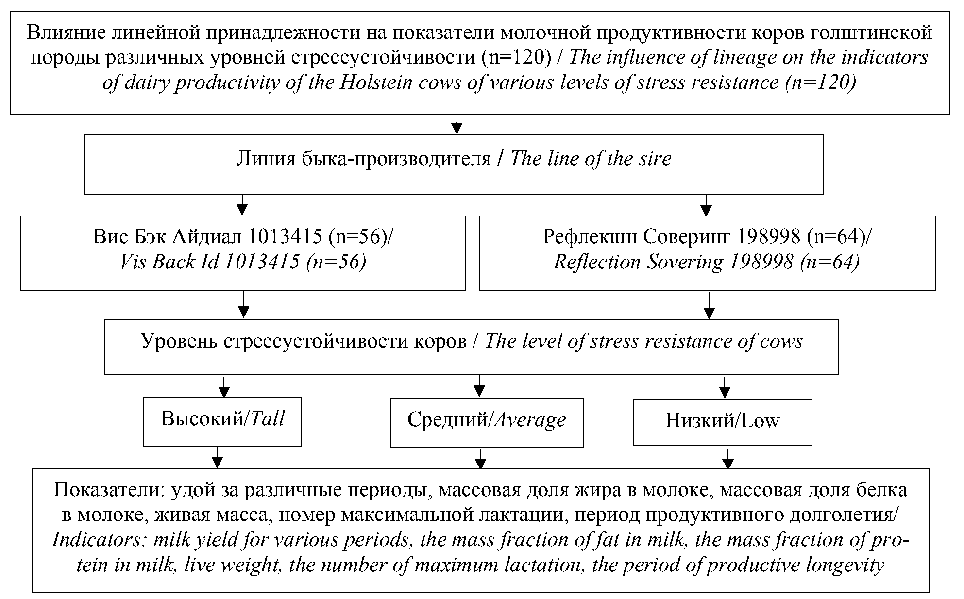 Отбор по линейной принадлежности животных в целях повышения продуктивного долголетия стада показал свою эффективность в работах многих исследователей (Беленькая А.Е. и Ярмоц Г.А., 2020; Чучунов В.А. и др., 2022; Костомахин Н.М. и др., 2024). При этом не все работы отражают результаты оценки коров по уровню устойчивости к стрессам с одновременным учётом происхождения животных.