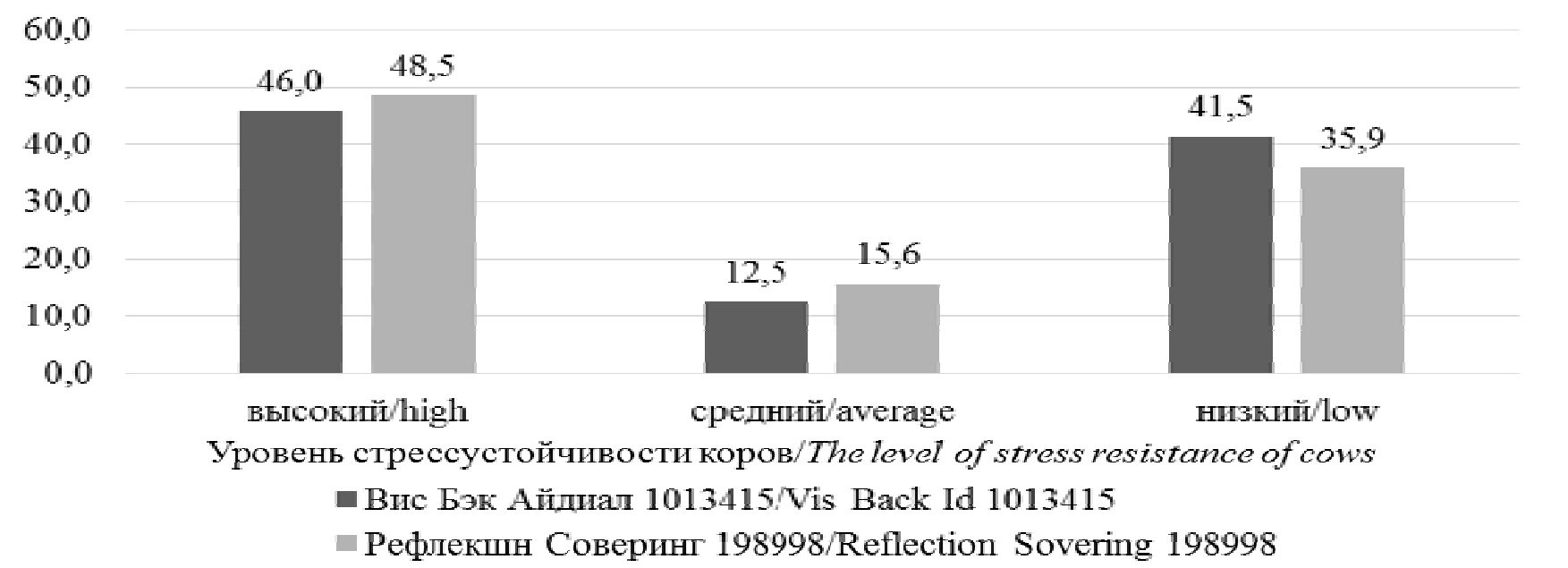Figure 2. The number of cows of different lines depending on the level of stress resistance, %