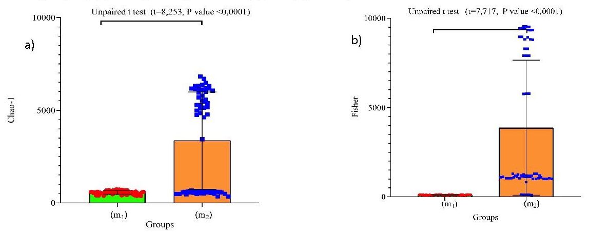 Figure 2. The figure shows alpha diversity indices (a – Chao-1; b - Fisher-alpha)