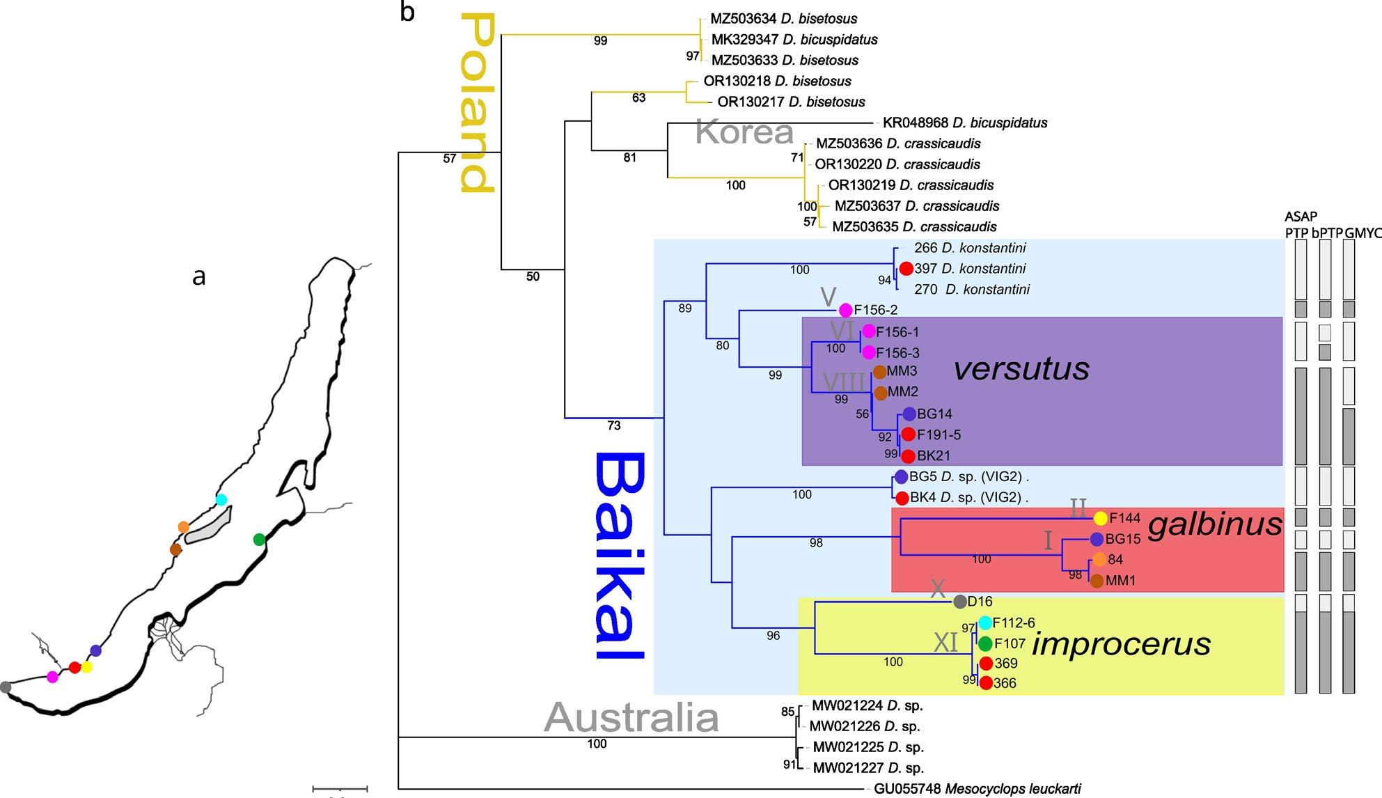 Первые результаты исследования Cyclopoida из озера Байкал выявили несогласованность молекулярных и морфологических данных для циклопов, по морфологии схожих с D. versutus, D. improcerus и D. galbinus. (Майор и др., 2017). Проанализированные особи циклопов по молекулярным данных вошли в филогруппы с неопределенным таксономическим статусом. Последующий анализ циклопов, относящихся к одной из этих филогрупп, обитающих в Южном Байкале, показал, что морфологически и генетически все исследованные особи близки между собой и, по-видимому, относятся к новому виду D. sp. (VIG2) (Mayor et al., 2019).