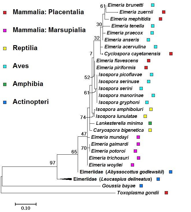- Ogedengbe M.E., El-Sherry S., Ogedengbe J.D. et al. 2018. Phylogenies based on combined mitochondrial and nuclear sequences conflict with morphologically defined genera in the eimeriid coccidian (Apicomplexa). International Journal for Parasitology 48: 59-69. doi: 10.1016/j.ijpara.2017.07.008