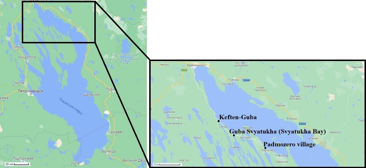 To date, materials have been published on the distribution of G. fasciatus on the southwestern part of the littoral of Lake Onego (Berezina and Panov, 2003), the northern part (Kukharev et al., 2008) and the littoral of Megostrov and Sosnovets islands and the eastern part of the reservoir (Sidorova and Belicheva, 2017). However, the role of the invasive species on the littoral of the Zaonezhye area (Zaonezhsky Peninsula in the northeastern part) of Lake Onego has not been previously investigated. For the first time, we obtained materials on the distribution of the species in the littoral zone in Guba Svyatukha and in the vicinity of Padmozero village.