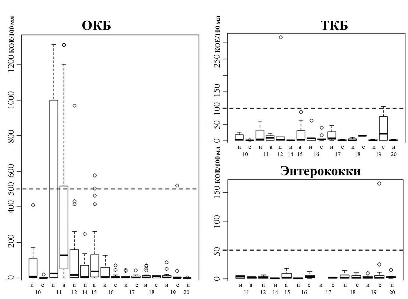Studies of the surface water in the pelagic zone of Lake Baikal both in previous years and in this period correspond to the norms of SanPiN 1.2.3685-21 and MUK 4.2.1884-04 “Sanitary-microbiological and sanitary-parasitological analisis of water in surface water bodies”, with single exceptions of samples for the number of OCB in 2011-2012, 2015, 2019, 2021-2022.