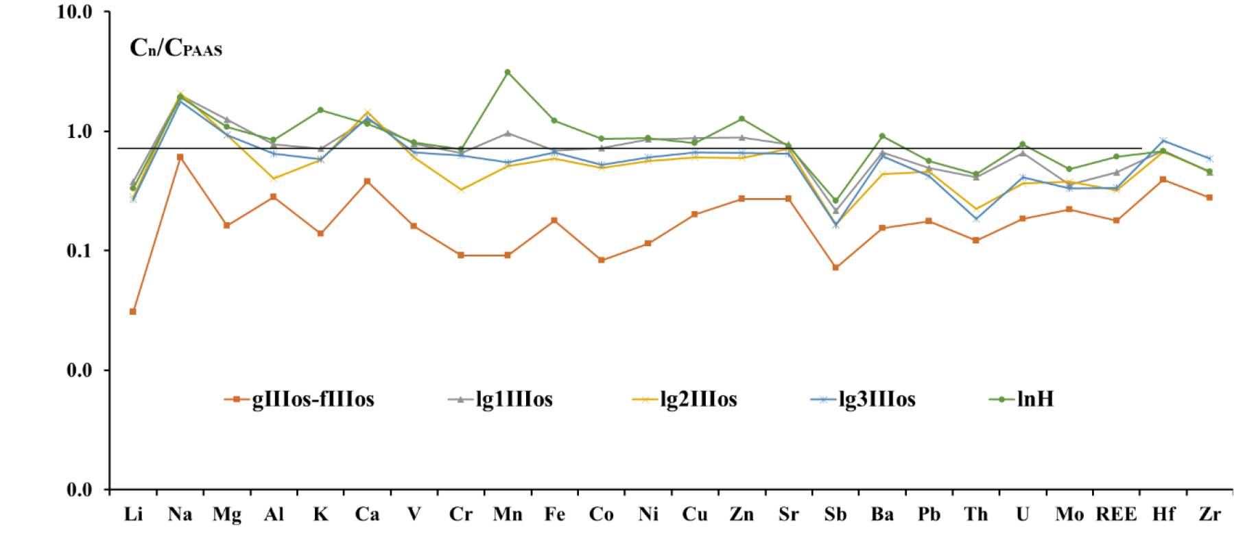 lnH | 58.17 | 0.70 | 13.94 | 8.96 | 0.43 | 2.51 | 1.97 | 2.26 | 2.53 | 0.34 | 0.09 |