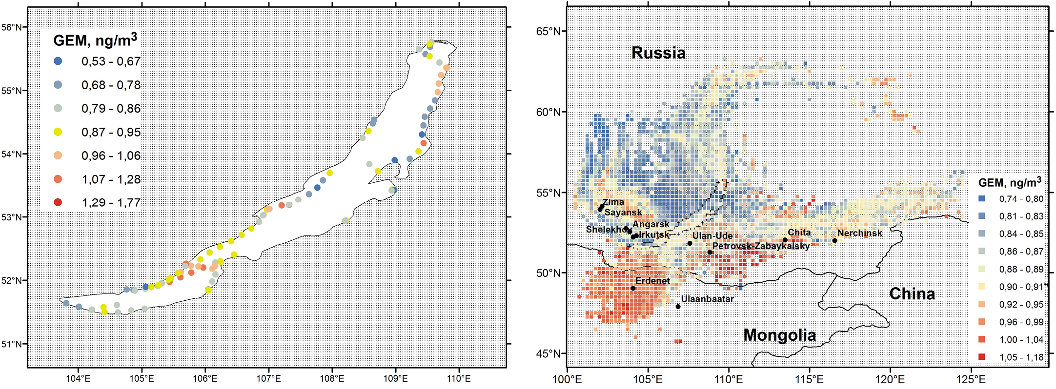 Within the GMOS project, air mercury monitoring has been running since November 2011 at the Listvyanka station located on the SW shore of Lake Baikal (Sprovieri et al., 2016). In July 2018, for the first time, air mercury survey was carried out throughout the Baikal area during the cruise onboard the research vessel (RV) “Akademik Koptyug” (Mashyanov et al., 2021).