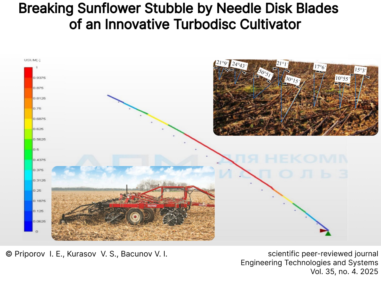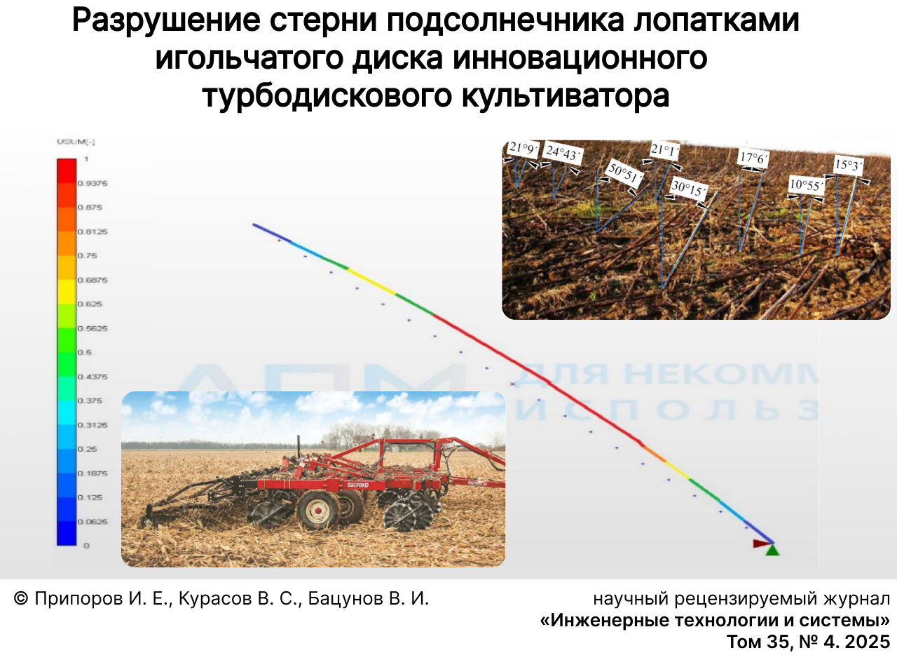 Разрушение стерни подсолнечника лопатками игольчатого диска инновационного турбодискового культиватора