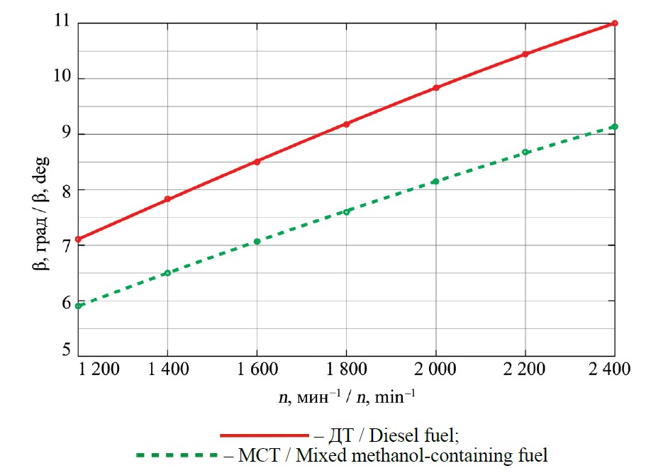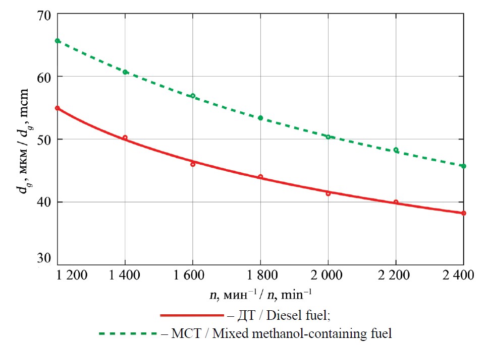 Results. The in-depth studies of the basic principles for evaluating the indicators of injecting and spraying standard fuel made it possible to adapt them for fuels of mixed methanol-containing composition and to investigate the dynamics of changes in the duration and speed of injection, the Weber criterion values, the boundaries between the areas of fuel jet forming, droplet size and spraying angle.