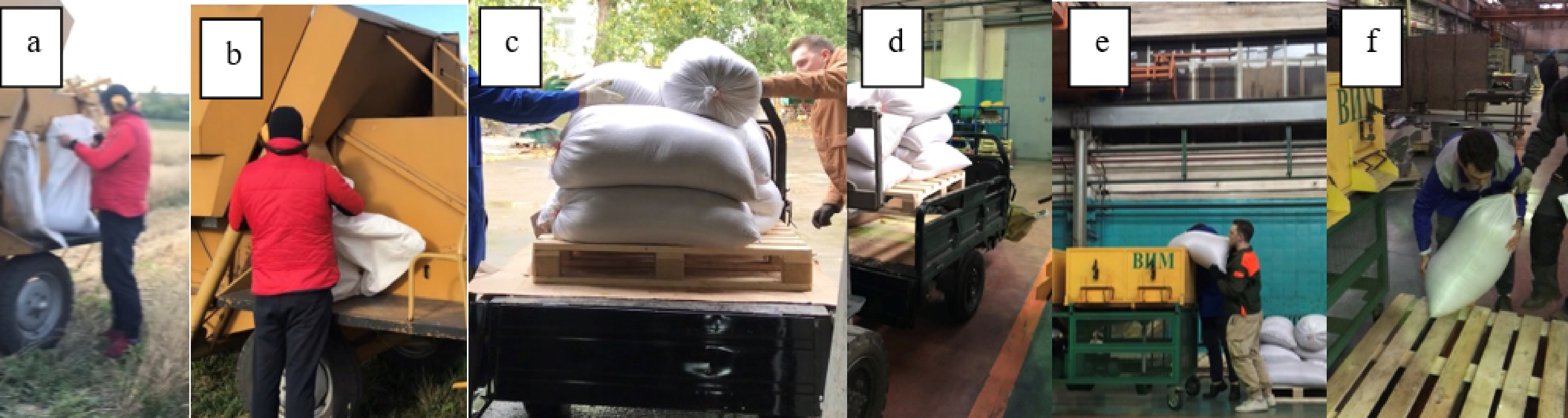 Рис. 2. Погрузочно-разгрузочные работы на операции уборки, транспортировки и сушки с применением мешкотары