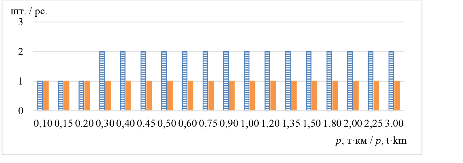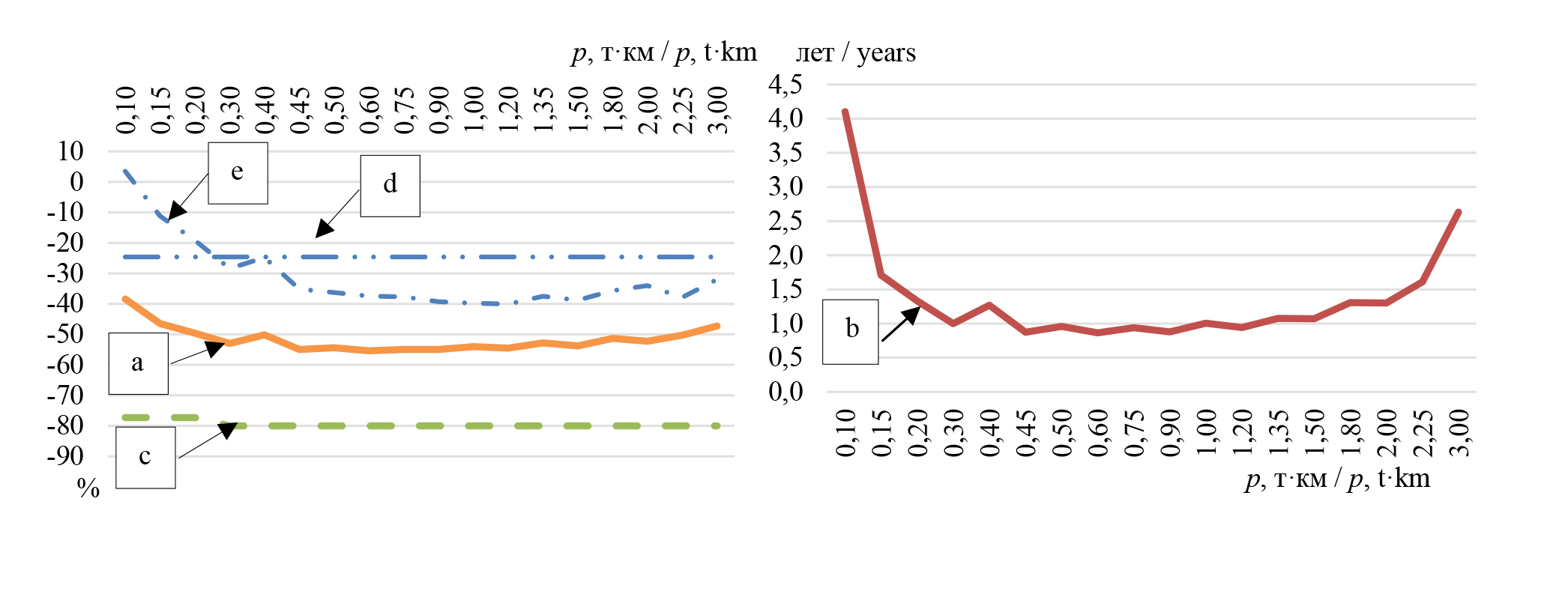 Также в таблице 4 курсивом отмечены показатели удельного грузооборота p = 1 т⋅км, при которых меньшая в данных условиях производительность техники обеспечивает большую экономическую эффективность.