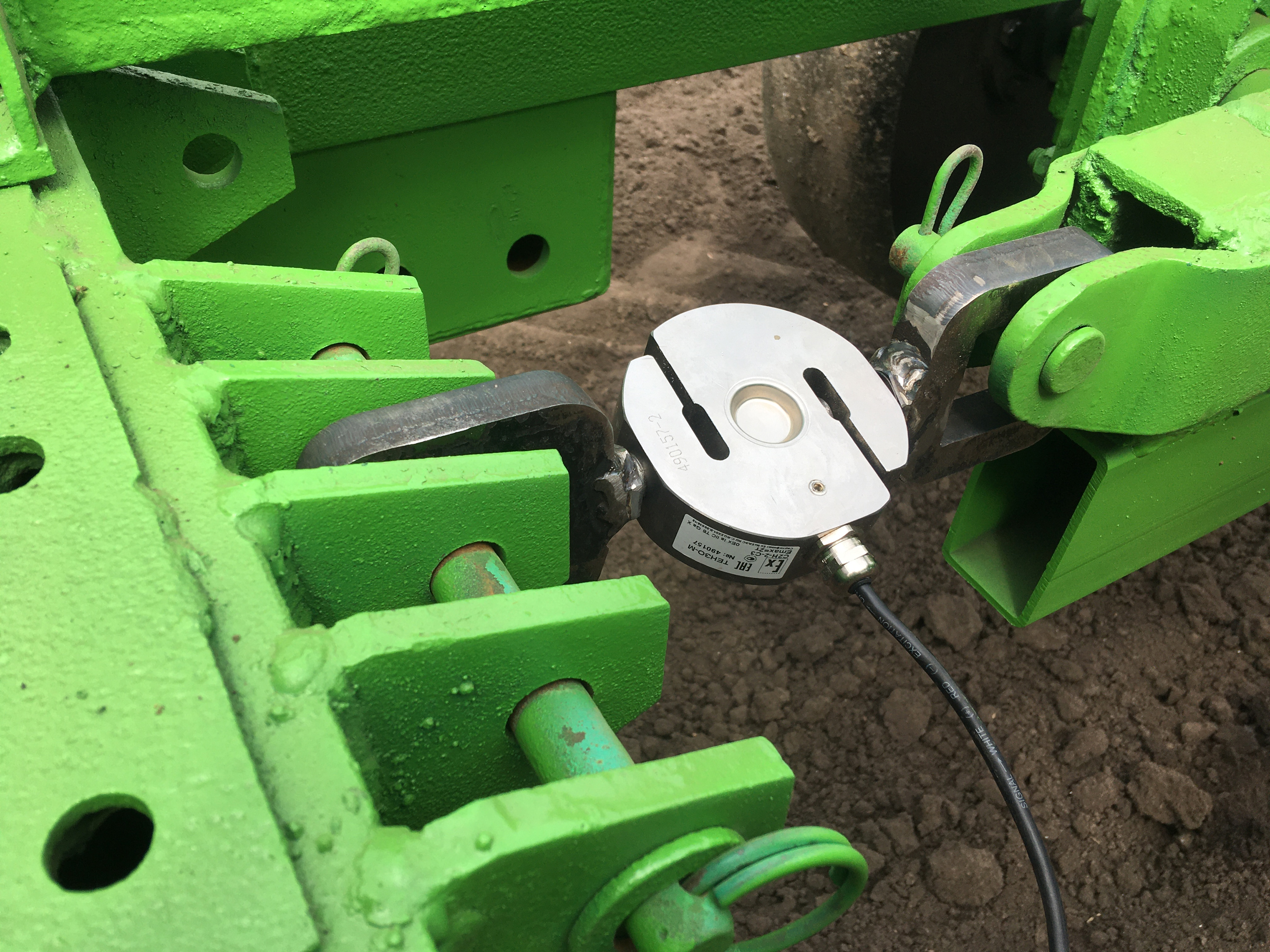 Исследования проводились в полевых условиях на экспериментальной установке. В качестве измерительного оборудования использовалась многоканальная тензометрическая система ZET 058 (рис. 3) производства Зеленоградской электротехнической лаборатории и тензодатчик силы растяжения и сжатия ТЕНЗО-М С2Н-2-С3 (рис. 4), установленный в шарнирном механизме экспериментальной установки по тяговой линии (рис. 3 и 4).