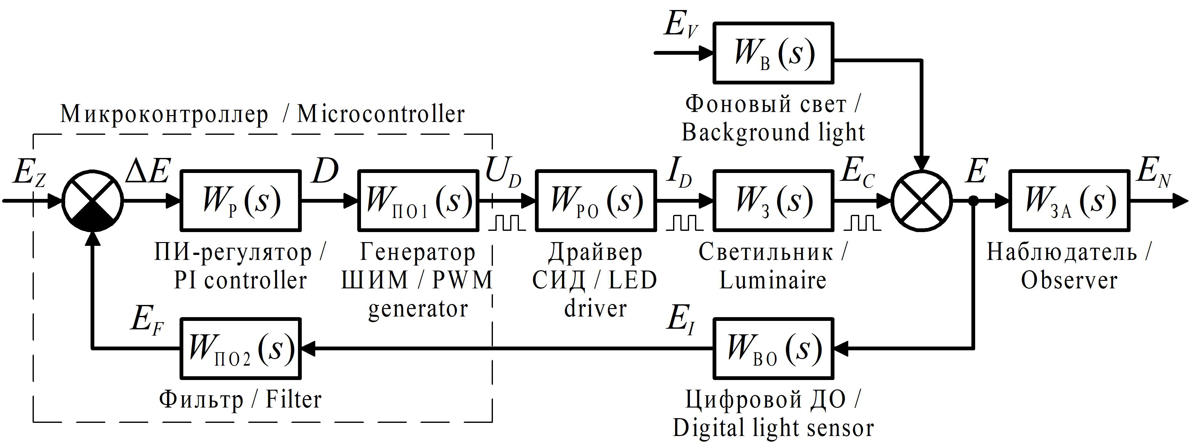 Р и с. 3. Структурная схема цифровой САР освещенности