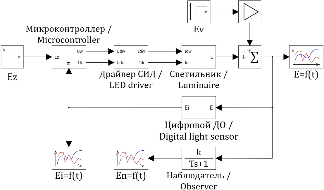 Р и с. 2. Функциональная схема цифровой САР освещенности