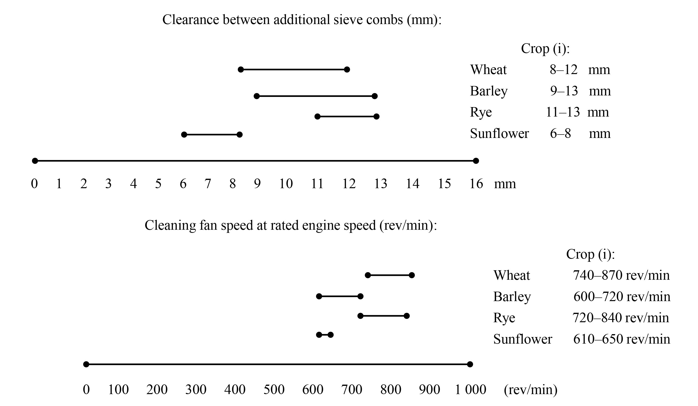 7 | Clearance between a straw beater and a concave (CSBC) | < CSBC, mm {Small, Average, Big}> | [10–35] |