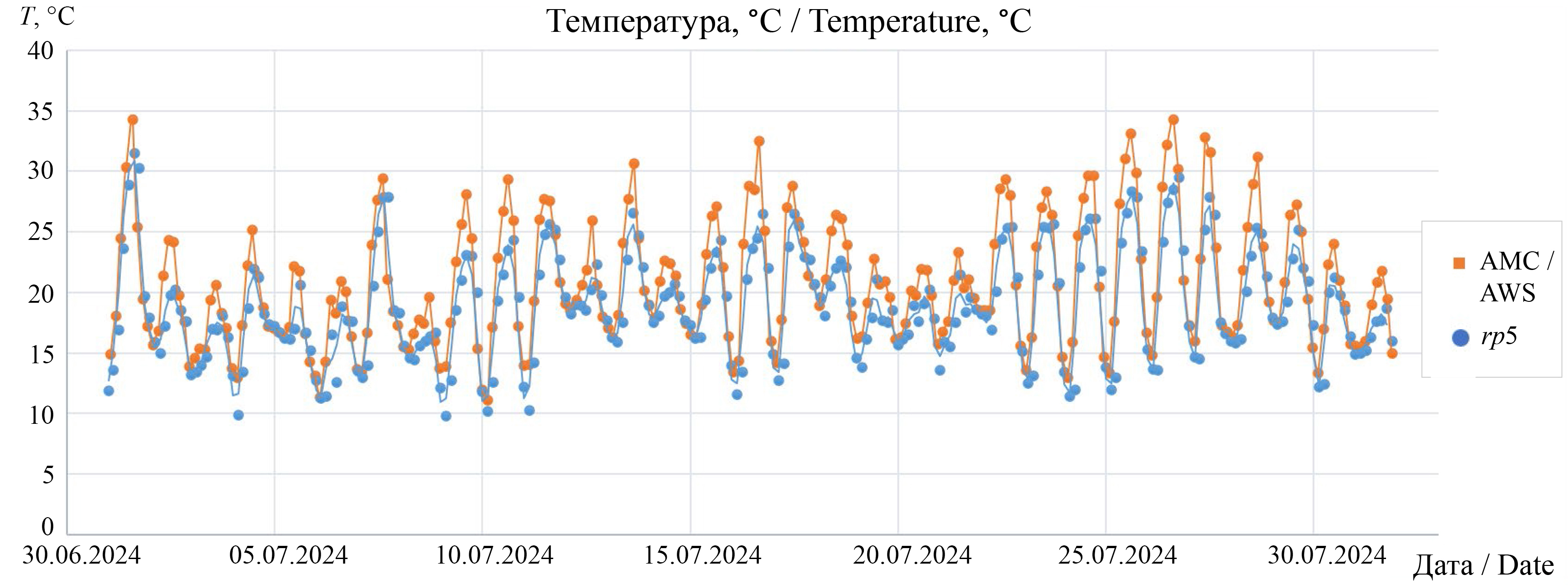 Рис. 5. Динамика температуры воздуха по данным автоматической метеостанции и открытого источника
