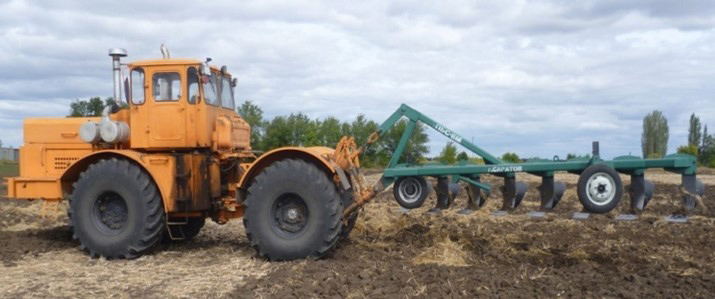Рис. 2. Навесной разработанный плуг ПБС-8М в агрегате с трактором К-701