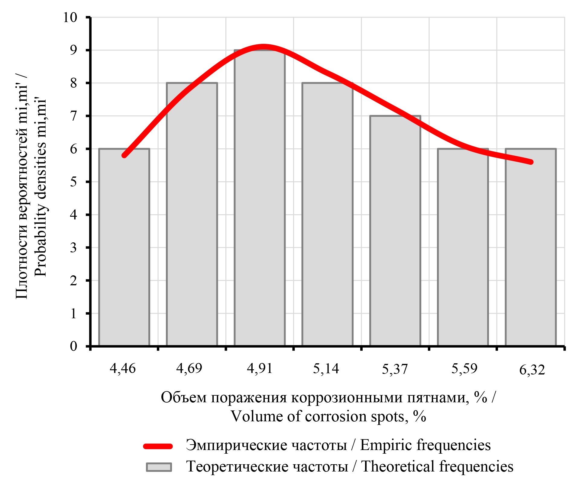 В процессе проведения экспериментальных исследований определялся процент поражения объекта исследования коррозийными пятнами каждые 48 ч. После чего для каждой из интервальных категорий выборок определялись их статистические характеристики, на основании которых строились гипотезы относительно соответствия закону распределения Вейбулла. Ниже представим используемый математический аппарат.