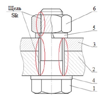 Fig. 3. Slits in the threaded connection and joints of the connected elements: