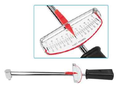 На воротке закреплена стрелка-указатель, на рукояти – шкала, по которой определяется момент усилия затягивания или откручивания. При нагрузке на рукоять рычаг изгибается и положение указателя смещается по шкале. При моменте усилия затяжки 80 Н‧м значение усилия предварительного натяжения будет в пределах 26,5 кН.
