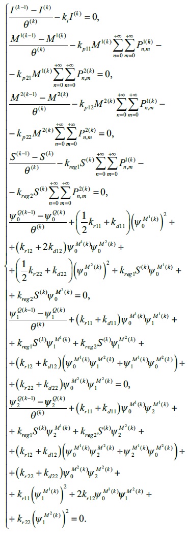 В частности, для представленной выше кинетической схемы процесса сополимеризации модельное описание примет вид системы нелинейных алгебраических уравнений, решаемых с использованием классических численных методов: