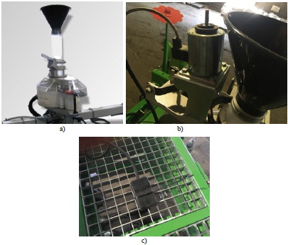 Fig. 3. Filling funnel and conical dispenser: a) filling funnel and conical dispenser with manual control