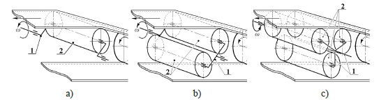 С учетом этого для анализа предложено три конструкционных схемы активаторов: одно-, двух- и трехроликовая (рис. 2).