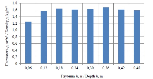 Fig. 3. Change in the average value of soil density at the depth of processing