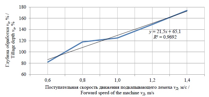 Увеличение поступательной скорости движения машины для уборки корнеплодов и лука vК способствует повышению повреждений до 1,6 % и полноты сепарации более 97 % в интервале значений исследуемого параметра от 0,9 до 1,8 м/с, что отображает аналитическая зависимость