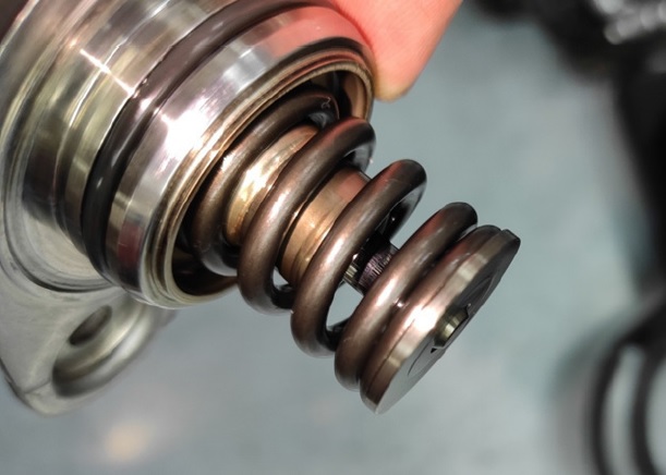 Пример нарушения работоспособного состояния топливного насоса высокого давления автомобиля Skoda Octavia с двигателем 1.8 TSI представлен на рисунке 1. На рабочем штоке заметны характерные задиры и повреждения вследствие механического воздействия абразива, скапливающегося на поверхности штока, температурных режимов работы, качества смазочного материала и нарушения целостности уплотнительных элементов.