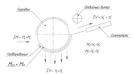 ΣM – total feed of grain and straw, kg/s; Mз and Мс – mass of grain and straw respectively;