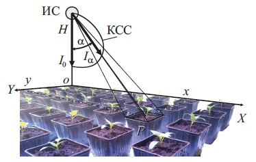 Использовали математический аппарат теоретической фотометрии, который применительно к данной задаче изложен в нашей предыдущей работе [30]. Расчетная схема показана на рисунке 1.