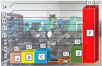 Как видно из таблицы 4 и рисунка 3, фактические значения коэффициента Kп у большинства участков имеют большой интервал изменения (от 2,5 до 36 раз). Это свидетельствует, с одной стороны, о плотности расстановки оборудования выше нормативной на части участков предприятий, а с другой ‒ о низкой технологической оснащенности и неэффективном использовании производственных площадей участков на ряде предприятий. Внешний вид производственных участков показан на рисунках 4 и 5.