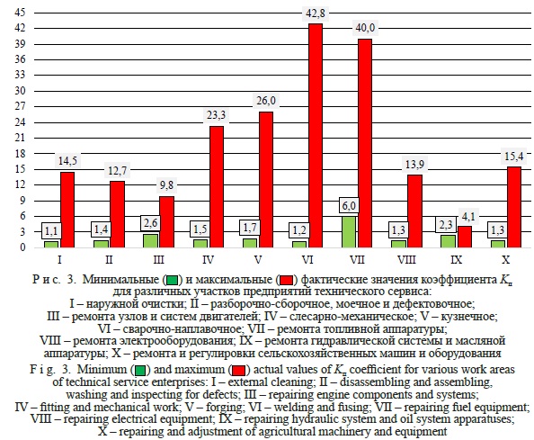 Table 4 Kп ratios for work areas of technical service enterprises