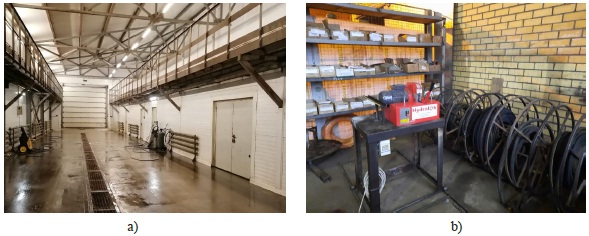 Fig. 4. Appearance of modern work areas for: a) external cleaning and washing