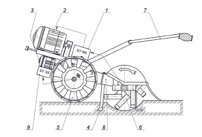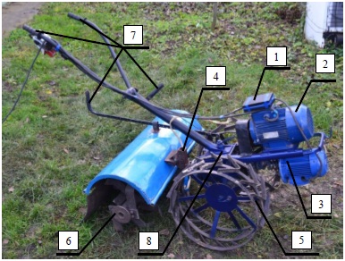 2 – electric motor of the drive for working tools; 3 – electric motor of the drive for running wheels;