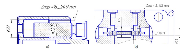 В исследованиях отмечено, что ресурсолимитирующими соединениями, вносящими значительный вклад в снижение величины объемного КПД гидроприводов ГСТ Hydrosila, являются «поршень – втулка»; «золотник – корпус», «распределитель 1 – распределитель 2» гидронасоса/гидромотора объемного гидропривода. Для восстановления работоспособности данных гидроприводов существует технология ремонта6. Восстановить изношенные детали аналогичных соединений зарубежных объемных гидроприводов, например Sauer-Danfoss, не представляется возможным, прежде всего, из-за отсутствия данных о номинальных конструкторских размерах и допускаемых отклонениях деталей и значениях технологических зазоров в соединениях.