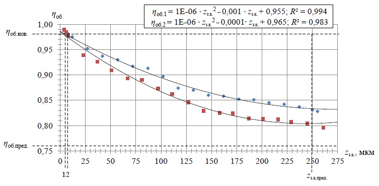 zпор: ηоб.нов. – maximum value of volumetric efficiency with a minimum technological clearance in the