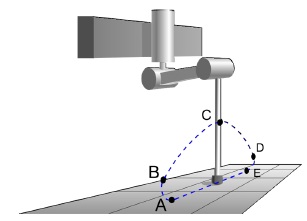 Каждая опора двигается по траектории, показанной на рисунке 3. Обычно траекторию делят на два участка: EA – участок, на котором опора удерживает вес машины; ABCDE – участок переноса опоры в новую позицию. Для плавного движения необходимо применять ряд мер для снижения колебаний корпуса и энергозатрат на возвратно-поступательное движение опор. Для этого траектория разбивается на большее число участков. Это позволяет задавать скорость движения для каждого из них. Для моделирования походки траектория движения разбивается на четыре участка: AB, BD, DE и EA. На динамику движения шагающей машины существенное влияние оказывают свойства грунта, которые чрезвычайно разнообразны. Грунт может быть твердым, рыхлым, сыпучим, вязким. Для плавного движения на любых типах грунта значение вертикальной скорости оконечности опоры в момент соприкосновения с поверхностью (участок кривой DE) должно быть минимальным. Также необходимо учитывать деформацию грунта под опорой. Для этого важно точно предсказывать и определять момент времени, когда опора коснется грунта и будет способна нести вес машины (точка E), а также корректировать положение опоры при проседании грунта под опорой.