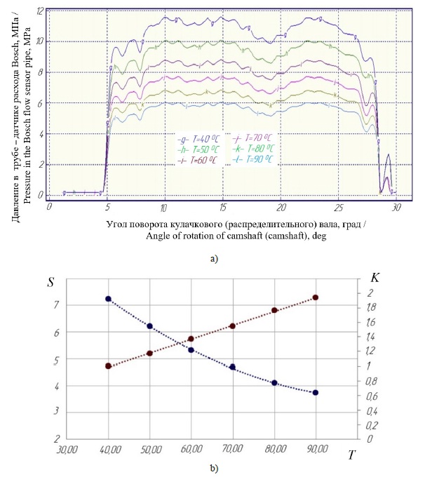 temperature: a) graphs of the pressure change in the injection adapter when the fuel temperature changes