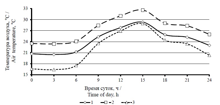 1 – средняя температура воздуха в коровнике в течение суток, °С;