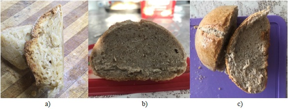 Для подтверждения экспериментальных расчетов было приготовлено тесто по рецептуре указанного выше ресторана: выпечка одного образца (рис. 4а), четырех образцов (рис. 4b) и десяти образцов (рис. 4c).