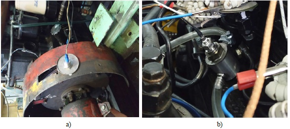 Также к устройству сбора данных (в тот же модульный системный блок) подключался индуктивный датчик, который фиксирует положение поршня в верхней мертвой точке (ВМТ). Подключенный датчик динамического давления PS-01 и индуктивный датчик представлены на рисунке 2.
