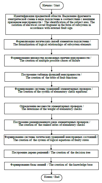 Results. A structural logic model is developed. As a result of analyzing the fault function table, the sets of elementary checks are determined. Four criteria have been used to analyze the weight of these checks. The authors have determined optimal sequence of checks and have developed a decision tree, which allows finding the cause of the malfunction and is the basis for creating the knowledge base of an intelligent information system. A fragment of the knowledge base is given.